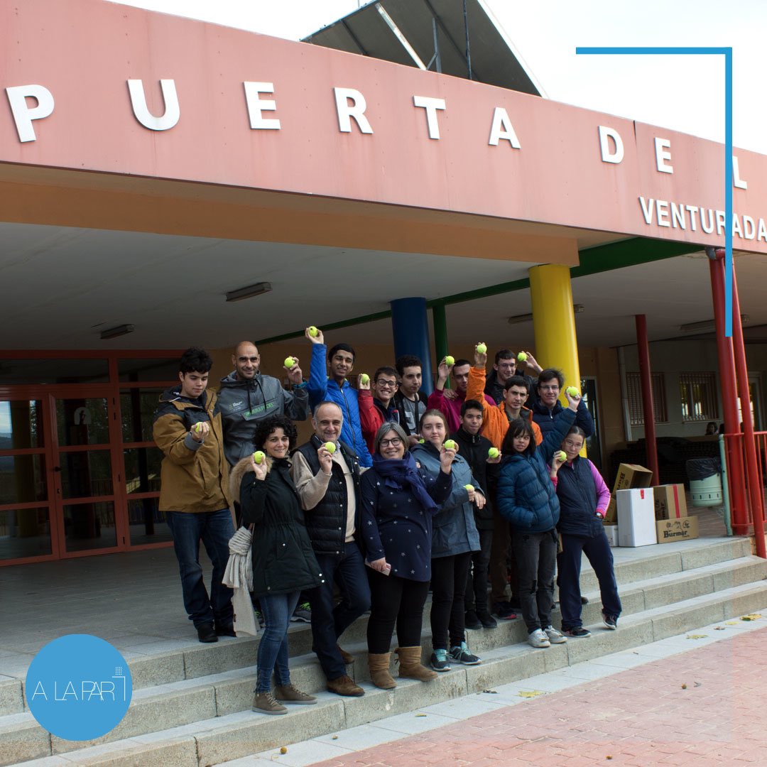 Desde ese día el Club de Pádel y Tenis, junto con alumnos y profesores del Colegio de la Fundación A LA PAR se han unido para intentar acabar con esta situación, ¿cómo? dando nueva vida a las pelotas de tenis que se iban a desechar en el Club de Pádel y Tenis, haciéndole unos agujeros para poder encajarlas en las patas de las mesas y sillas del Colegio de Valentino. Esto servirá a amortiguar el sonido.